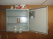 | Roaster oven | An electric table or cabinet top popular in the 1950s. Large enough to bake turkeys, they had removable inserts which held the food and a lid, often with a glass insert. | |