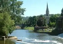 Looking south from the Pulteney Bridge in Bath