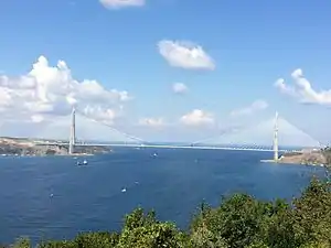 The Yavuz Sultan Selim Bridge with the Black Sea beyond it.