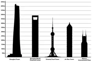 The tallest skyscraper in Shanghai is the Shanghai Tower, which is 632 m (2,073 ft) tall with 128 floors. It is currently the tallest building in the People's Republic of China and the third tallest in the world.[9]