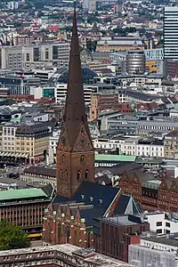 17St. James' Church 125.4 m (410 ft)1963Hamburg GermanyLutheran53°33′01″N 10°00′01″E / 53.550359°N 10.000359°E / 53.550359; 10.000359 (St. Jacobi, Hamburg) Fourth-tallest church in Hamburg; new, modern spire finished 1963