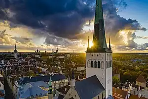 66-71St. Nicholas' Church 105.0 m (344 ft)1696 Tallinn EstoniaLutheran59°26′09″N 24°44′32″E / 59.435955°N 24.742222°E / 59.435955; 24.742222 (St. Nicholas' Church, Tallinn)Third-tallest church in the Baltic states; cathedral itself dates from 1275