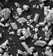 LAH is a colourless solid but commercial samples are usually gray due to contamination.[5] This material can be purified by recrystallization from diethyl ether. Large-scale purifications employ a Soxhlet extractor. Commonly, the impure gray material is used in synthesis, since the impurities are innocuous and can be easily separated from the organic products. The pure powdered material is pyrophoric, but not its large crystals.[6] Some commercial materials contain mineral oil to inhibit reactions with atmospheric moisture, but more commonly it is packed in moisture-proof plastic sacks.[7]