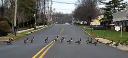 Canada Geese cross street in Little Silver, New Jersey
