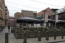 The area is home to a range of repurposed warehouses and industrial units which have been converted into offices and studios for a growing number of creative and digital businesses, hotels, a number of live music venues, independent food and drink traders. The area is also known for its street art and the Cains Brewery Village which accommodates coffee shops, markets and bars.[18]