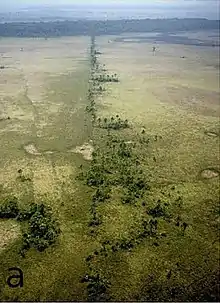 In general, soil fertility in the Llanos decreases from south to north. The soils of the southernmost Llanos benefit from the deposits of sediments by rivers flowing down from the nearby Andes. The quantities of those sediments decrease northward and the typical infertile lateritic soils of the Amazon prevail.[7] Associated with pre-historic settlements is Amazonian dark earth, called "terra mulata" or terra preta. These highly-productive soils are the product of human occupation and endeavors to improve soil fertility.[8] The people of the Moxos plains domesticated their landscape by practicing raised bed agriculture and improving soils by the addition of organic matter.[9]