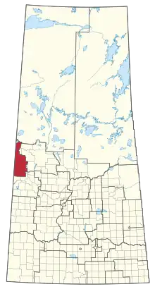 The district was significantly reconfigured before the 2003 general election, losing most areas south and east of Lloydminster to the newly-created Cut Knife-Turtleford while gaining a large area north of Lloydminster (along the Alberta border) from Meadow Lake.[1] The district has not been significantly reconfigured since 2003, but it lost a small amount of territory to Meadow Lake before the 2016 general election, largely due to population growth in the city of Lloydminster. An area immediately southeast of the Lloydminster city limits (including the town of Marshall) will move to Cut Knife-Turtleford for the next general election for similar reasons.