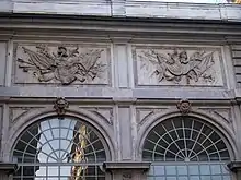 All’esterno lo spazio al di sopra degli archi è decorato con una serie di bassorilievi raffiguranti trofei d’armi, realizzati da Taddeo Carlone.[1][4]