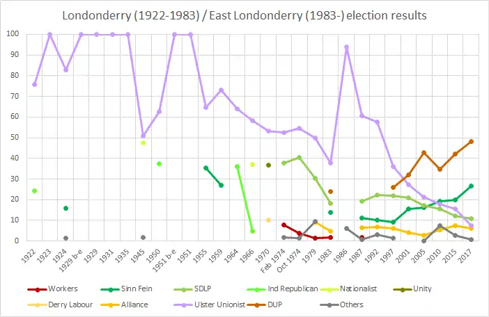 From its inception Londonderry had a unionist majority, though by the 1970s the nationalist vote was approaching 40% in some elections.