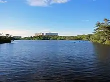 Long Lake is a provincial park controlled by the Department of Natural Resources and Renewables of the Government of Nova Scotia (formerly called the Department of Lands and Forestry).[1] The park is not as well known as some other local public spaces despite its proximity to central Halifax and its large size, rivalling that of the Halifax peninsula. In 2003, the Department of Natural Resources entered into consultation with the Long Lake Provincial Park Association on the development of a park management plan which was completed in 2008 and subsequently adopted for park management purposes. In early 2015 the Long Lake Provincial Park Association started to build accessible walking and cycling trails on the east side of the lake near Northwest Arm Drive (Dunbrack Street) in Spryfield. These were constructed under a formal agreement between the association and the provincial government. There are now approximately 5.5 kilometres (3.4 mi) of wide multi-use trails that lie along the east side of Long Lake, together with a loop around Withrod lake. Benches are installed along the trail and members of the public can have plaques installed on the benches. There is also a parking lot and a washroom across from the Cowie Hill Road. Another parking lot has been added along with a Kayak/Canoe launch at the location of the old pumphouse on Old Sambro Road across from Schnare Street.