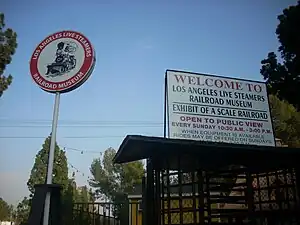 The Los Angeles Live Steamers Railroad Museum (LALSRM) is a non-profit public-benefit corporation founded in 1956 by live steam enthusiasts for the purpose of educating the public about railroad history and lore, and to promote live steam and scale model railroad technology. The museum is located in Griffith Park in Los Angeles, California and is open from 11 a.m. to 3 p.m. every Sunday weather permitting. In 1956, all of the model locomotives were steam-powered, hence the name "Live Steamers". Over the years, gasoline-powered models of diesel locomotives and battery-electric locomotives and trolleys have also become popular. The museum operates a 7+1⁄2 in (190.5 mm) gauge miniature railway on which these locomotives pull trains that the public can ride.