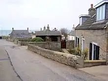 The Seatown was established at the end of the 17th century when the old port at Spynie became landlocked. A succession of storms had built up large shingle banks to block the outlet of Loch Spynie to the sea. The merchants of Elgin decided that a new harbour that could berth larger trading vessels at the river mouth was required. The fishermen did not use the new pier, however, but continued to sail their boats up to the beach at the Seatown. Seatown is called The Toonie by its inhabitants and sometimes referred to as the Dogwall. This was a reference to dog-skins that were dried here before being turned into floats for nets.