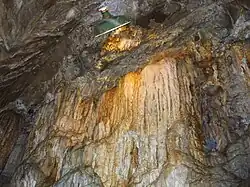 Lost River Caverns is a natural limestone cavern located on the east side of Hellertown, Pennsylvania, United States, and consisting of five chambers. The caverns were formed by the karstification or dissolving of the limestone by water. In the past the caverns have been called Rentzheimer's Cave and Lost Cave.[1] The "Lost River", so named because the source and mouth of the river have not yet been discovered, flows through it. The temperature in the cave is consistently in the 52 °F (11 °C) area. There is a gift shop and a museum before the entrance.