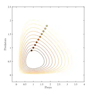 - ↑ Baigent, Steve (2010-03-02). "Lotka-Volterra Dynamics - An introduction" (PDF).