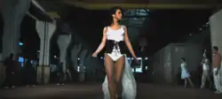 The visual opens with a confluence of black and white flowing water fluxes, followed by a ballerina pirouetting through the air "in a grim decor, full of old machines".[8] Subsequently, a boxer is shown beating a punching bag, while a topless man empties a water bottle onto him and a woman sporting a white hoodie holds a bat in her hands. Later in the video, the aforementioned appear to fight against people masked entirely in black. Near the end, Inna walks among the two parties before they disappear. Interspresed shots show the singer wearing a white leotard with a black corset and a long white veil attached to it, as well as the topless man jumping in the air. Some of the video's scenes are played in slow motion or backwards.[17]