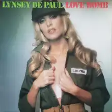 Love Bomb is the fourth album released in 1975 by the British singer-songwriter Lynsey de Paul, and her second album released on Jet Records in the UK[1] and Polydor in Germany, Australia and Japan.[2][3] In the US and Canada, it was released in January 1976 on Mercury Records.[4][5][6][7][8] The album was recorded at the Marquee Studios, London, England, produced by de Paul and arranged by Tony Hymas, with Terry Cox playing drums, John Dean percussion, Chris Rea guitar and Frank McDonald bass.[9] The striking sleeve cover photo of de Paul in U.S. military style clothing was taken by Brian Aris.[3]