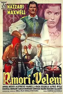 Love and Poison (Italian: Amori e veleni) is a 1950 Italian historical adventure film directed by Giorgio Simonelli and starring Amedeo Nazzari, Lois Maxwell and Marisa Merlini.[1] It was released in America in 1952, and is sometimes dated by that year. The film was shot at the Cinecittà Studios in Rome.