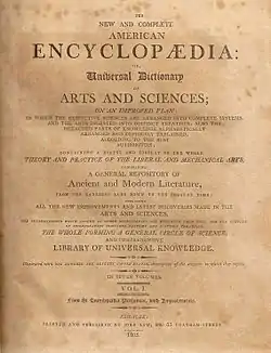 Plans for the encyclopedia were begun, and subscriptions began being taken, much earlier than the original publication date, as it is known that around 1802, Thomas Jefferson subscribed to a set, which was delivered in 1811 for $75.[7] Its intention was to compete with Dobson's Encyclopedia, as stated in the "Preface", which was written in 1811 by Esther Low: