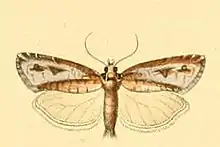 The wingspan is 22–27 mm. Adults are on wing from April to June.