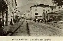 Ponte Moriano is a frazione of Lucca located 6 miles (9.7 km) north of Lucca, and at the time was an area known for the manufacture of jute goods in factories powered by the river Serchio.[5] The project of the short tramway was born on the initiative of the Genoese entrepreneur Emanuele Balestreri, owner of the Ponte a Moriano jute factory.[6][2]
