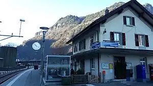 Luchsingen-Hätzingen railway station is a railway station in the municipality of Glarus Süd in the Swiss canton of Glarus. It takes its name from the nearby villages of Luchsingen and Hätzingen. The station is situated on the Weesen to Linthal railway line, and served by the hourly Zürich S-Bahn service S25 between Zurich and Linthal.[1][2][3][4]