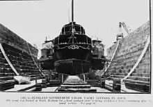 On 28 January 1937, the vessel was beached on the south east side of Bishop Island at the mouth of the Brisbane River to form a breakwater,[10][11] after she had been cut down to a bare hull.[2][4] The hulk was removed in 1993 as part of the expansion of the Port of Brisbane.[12]
