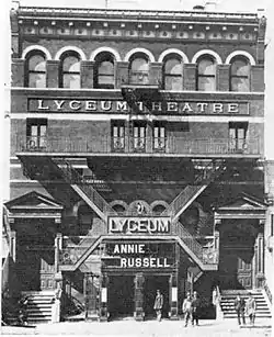 ![]() Facade of the Lyceum announcing an appearance by Annie Russell. | |