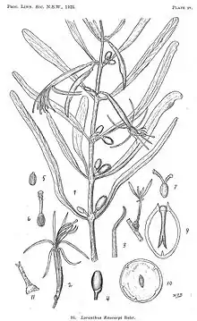 - ↑ Barlow, B.A. (1984). Loranthaceae. In Flora of Australia and New Zealand. (Ed. A.S. George) Australian Government Publishing Service: Canberra. Vol 22, p.80.