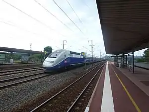 Mâcon-Loché TGV station (French: Gare de Mâcon-Loché TGV) is a railway station on the TGV Sud-Est located in the commune of Mâcon, Saône-et-Loire, France. Its address is 142, Rue de Pouilly-Loché, 71000 Mâcon, the station is a few kilometres from the neighbouring town of Loché. The next station southbound is Lyon Part-Dieu and the next northbound station is Le Creusot TGV.
