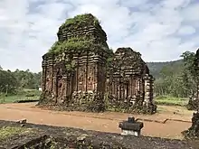 Mỹ Sơn (Vietnamese pronunciation: [mǐˀ səːn]) is a cluster of abandoned and partially ruined Shaiva Hindu temples in central Vietnam, constructed between the 4th and the 14th century by the Kings of Champa, an Indianized kingdom of the Cham people.[1][2] The temples are dedicated to the veneration of God in accordance with Shaivism, wherein God is named Shiva, or The Auspicious One. In this particular complex, he is venerated under various local names, the most important of which is Bhadreshvara.