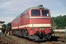 The M62 is a Soviet-built diesel locomotive for heavy freight trains, exported to many Eastern Bloc countries as well as to Cuba, North Korea and Mongolia. Beside the single locomotive M62 also twin versions 2M62 and three-section versions 3M62 have been built. A total number of 7,164 single sections have been produced, which have been used to build 5,231 single-, twin- and three-section locomotives.[1]