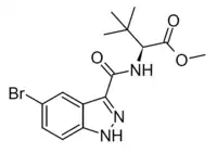 MDMB-5Br-INACA is an indazole-3-carboxamide derivative which has been sold as a designer drug.[2] Surprisingly it appears to produce psychoactive activity despite the lack of a "tail" group at the indazole 1-position, but is of relatively low potency and has been encountered being misrepresented as other illicit drugs such as MDMA.[3][4]
