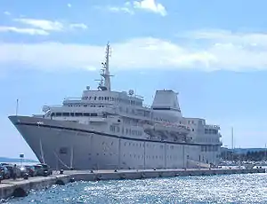 MV Aegean Odyssey is a cruise ship owned and operated by Voyages to Antiquity, a one-ship cruise company established in 2009. Built as a ferry in 1973, it was converted to a cruise ship in 1988, and substantially rebuilt in 2010.