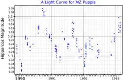 MZ Puppis is a red supergiant star in the constellation of Puppis. It has a radius of 400 R☉.[8]