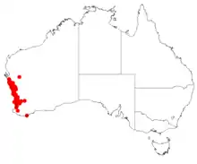 Macarthuria australis is an erect or spreading, wiry shrub, in the family Macarthuriaceae endemic to Western Australia.[3] It grows from 0.15-0.75 m high and has white/white-cream flowers, and may be seen in flower from May to February although mainly from August to September. It grows on sand and laterite, on coastal sandplains, sandhills, and roadsides.[3]