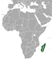Some taxonomists regard it as conspecific with the widely distributed Etruscan shrew, the smallest known mammal by mass,[1][2] and likely to have been introduced to Madagascar from India or Southeast Asia by humans.[3] It is found in Madagascar and the Comoros, at altitudes from sea level to 1500 m.[1]