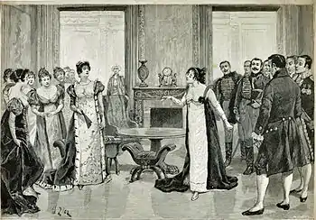 The rest of the play is set at the Château de Compiègne in September 1811, during the reign of Napoleon I. Lefebvre, who has married Catherine, has distinguished himself in the army and has been appointed Marshal of the Empire and Duke of Danzig. He and his wife are visited by Neipperg, who has been at the French court (where the Empress, Marie Louise, is Austrian) but is now obliged to leave, suspected of an affair with the wife of a high-ranking Frenchman.