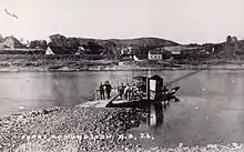 1919 photo of a hand-pulled ferry that enabled travel between Madawaska and Edmundston prior to the construction of the original bridge.