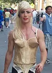 Madonna has a long-lasting history advocating for the community, and "actively participating in gay culture" according to LGBT-targeted magazine Attitude.[11] In this aspect, French academic Georges-Claude Guilbert, writes in Gay Icons (2018) that "Madonna has done little else in her career, camping like a gay man, quoting like a gay man".[11] Boy George described her as "a gay man trapped in a woman's body".[12] In 2017, the British LGBT Awards stated: