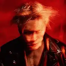The first person was presented on March 31, 2022, with the release of "Blow",[22][23] the opening song of the album. The track is reminiscent of 90s rock and balances analog and digital sounds, as well as combining hard percussion sounds and distorted guitar riffs in the chorus, creating a drunken-trance-like atmosphere.[16][24] The sonic intensity is matched with a raspy-almost-gruff vocalization.[16] "Blow" speaks of a forbidden love, "fleeting-yet-heated", in which the singer is drawn in by a stranger woman's magnetism, regardless of the danger.[16] The music video, directed by Daniel Cloud Campos and released on the same day,[24] has a steampunk vibe, with corsets and puff sleeves, which was compared to Dorian Gray and Bridgerton:[16][17][22][25] Wang and a group of party-goers, passed out on the floor, inhale an unknown smoke-like substance and, when they regain consciousness, start dancing in a state of trance.[16][23]