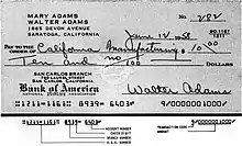 The trial of MICR E-13B font was shown to the American Bankers Association (ABA) in July 1956, which adopted it in 1958 as the MICR standard for negotiable documents in the United States. ABA adopted MICR as its standard because machines could read MICR accurately, and MICR could be printed using existing technology. In addition, MICR remained machine readable, even through overstamping, marking, mutilation and more. The first cheques using MICR were printed by the end of 1959. Although compliance with MICR standards was voluntary in the United States, it had been almost universally adopted in the United States by 1963.[16] In 1963, ANSI adopted the ABA's E-13B font as the American standard for MICR printing,[17] and E-13B was also standardized as ISO 1004:1995.