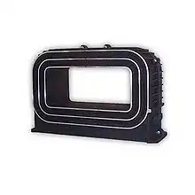 • Pull-through AC demagnetizing coils: seen in the figure to the right are AC powered devices that generate a high magnetic field where the part is slowly pulled through by hand or on a conveyor. The act of pulling the part through and away from the coil's magnetic field slows drops the magnetic field in the part. Note that many AC demagnetizing coils have power cycles of several seconds so the part must be passed through the coil and be several feet (meters) away before the demagnetizing cycle finishes or the part will have residual magnetization.