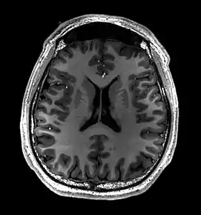 In the early 1990s, Peter Basser and Le Bihan, working at NIH, and Aaron Filler, Franklyn Howe, and colleagues developed diffusion tensor imaging (DTI).[6][7][8][9] Joseph Hajnal, Young and Graeme Bydder described the use of FLAIR pulse sequence to demonstrate high signal regions in normal white matter in 1992.[10] In the same year, John Detre, Alan P. Koretsky and coworkers developed arterial spin labeling.[11] In 1997, Jürgen R. Reichenbach, E. Mark Haacke and coworkers at Washington University in St. Louis developed Susceptibility weighted imaging.[12]