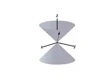 - −2K2 < K1 < 0: the ferromagnet has an easy cone (see figure to right).