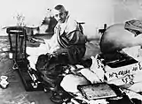 Mahatma Gandhi with his spinning wheel in 1929. On his 1927 trip to Ceylon he gifted a spinning wheel and a colour poster titled 'Fighters for Swaraj,' to the Corea Family in Chilaw.