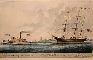 Mahlon Williamson being towed on the Delaware River by tugboat William Cramp