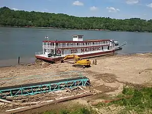 In September 2022, the showboat left New Richmond and was pushed up the Ohio River back to Manchester, Ohio where it is banked near the Moyer Winery.[27]