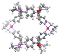 - ↑ Fujita, Makoto; Tominaga, Masahide; Hori, Akiko; Therrien, Bruno (2005). "Coordination Assemblies from a Pd(II)-Cornered Square Complex". Accounts of Chemical Research. 38 (4): 369–378. doi:10.1021/ar040153h. PMID 15835883.