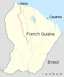 The Mana (French pronunciation: [mana]) is a river in western French Guiana. It runs north from central French Guiana to the town of Mana, where it flows into the Atlantic Ocean. It is 462 km (287 mi) long.[1]