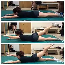 Scoliosis specific exercises have been found to improve treatment outcomes when utilized in addition to bracing and other standards of care.[18] Scoliosis specific exercises include methods such as Schroth[19] which specifically aim to correct aesthetic differences and strengthened muscles and connective tissue that may have atrophied as a result of scoliosis and asymmetric posture. Schroth exercises and other scoliosis specific exercises should be utilized in conjunction with bracing and other standards of care,[20] and be performed under the guidance of a trained professional to ensure the exercises are effective and target the individual's curve pattern so that the correct muscles are strengthened. Strengthening spinal muscles is a crucial preventive measure. This is because the muscles in the back are essential when it comes to supporting the spinal column and maintaining the spine's proper shape. Exercises that will help improve the strength of the muscles in the back include rows and leg and arm extensions.[21] Elastic resistance exercise may also be able to sustain the progression of spinal curvature.[22] This type of exercise is able to sustain progression by equalizing the strength of the torso muscles found on each side of the body.
